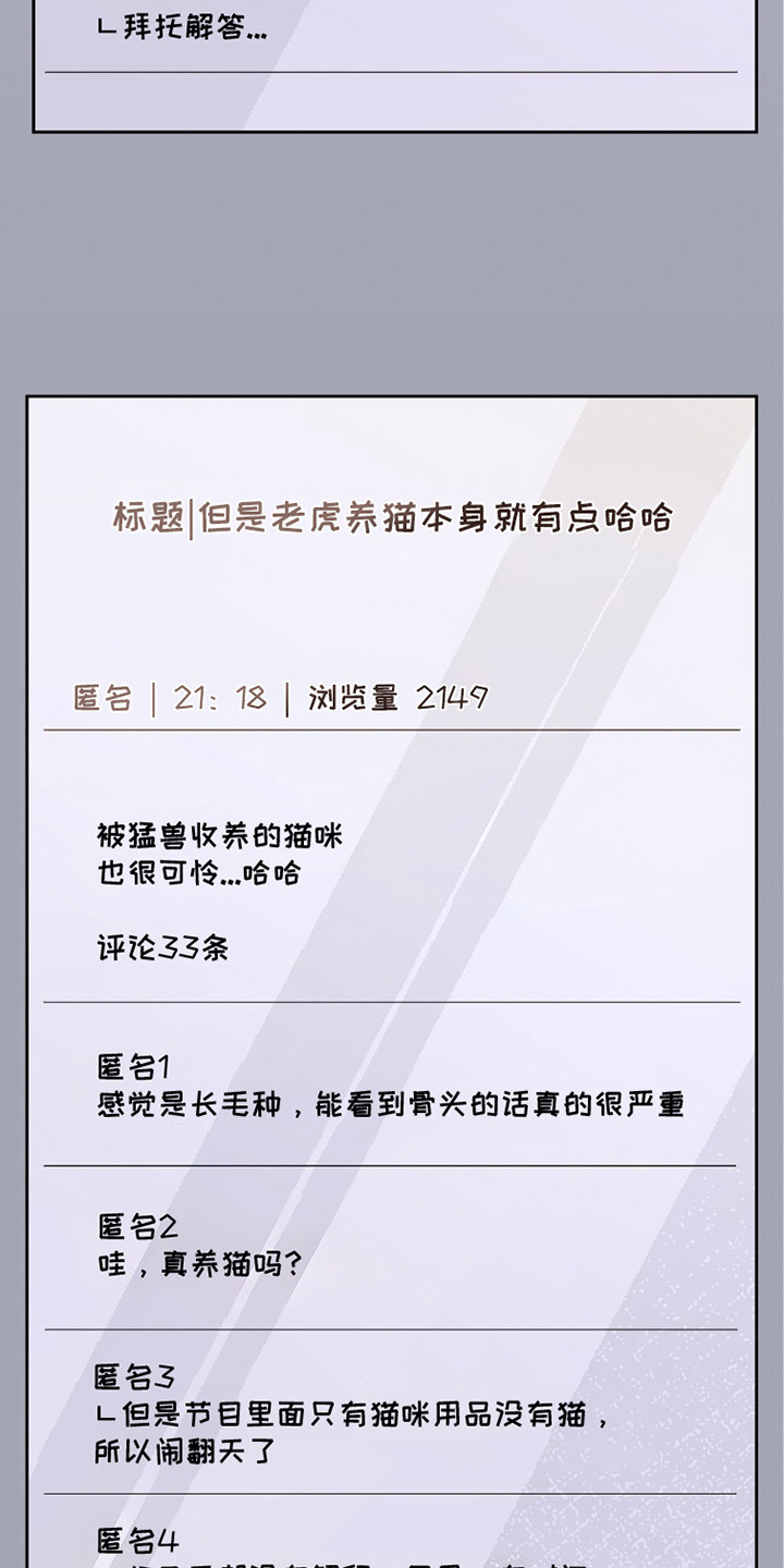当红虎兽人演员徐龙宇在片场偶然救下一只被众人嫌弃的黑猫,却意外发现它竟能变成人形。一个是身处娱乐圈、常被定型为“反派”的稳重演员,一个是戒备心强、身世成谜的神秘猫少年,两人由此展开一段充满温暖、笑料与逐渐萌生情感的治愈故事...